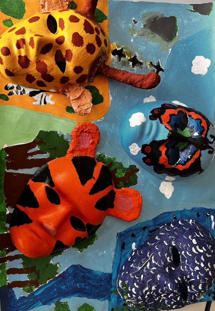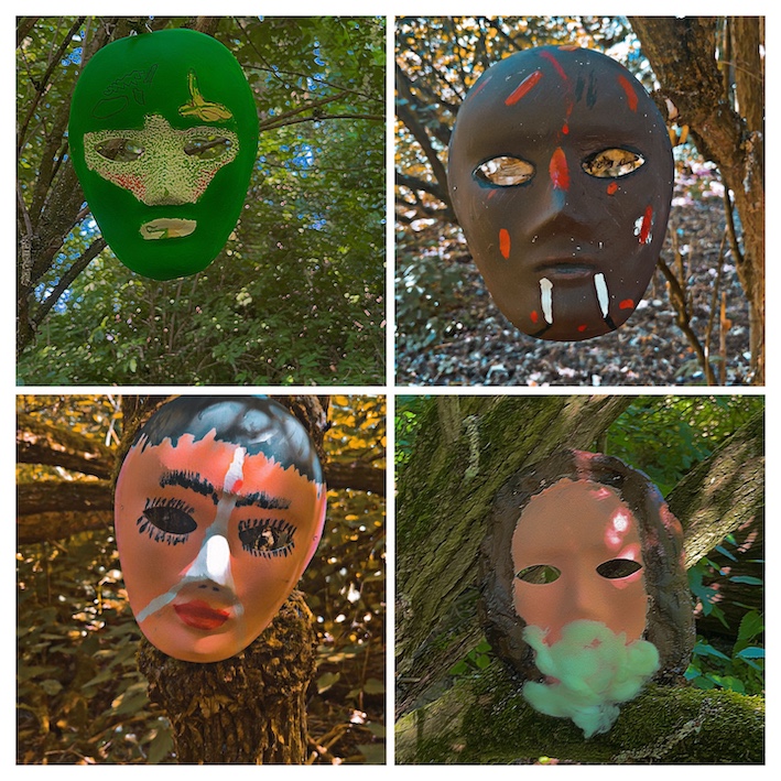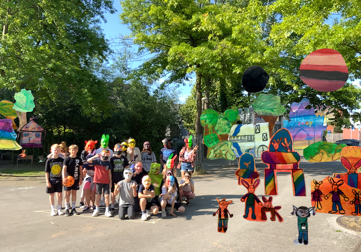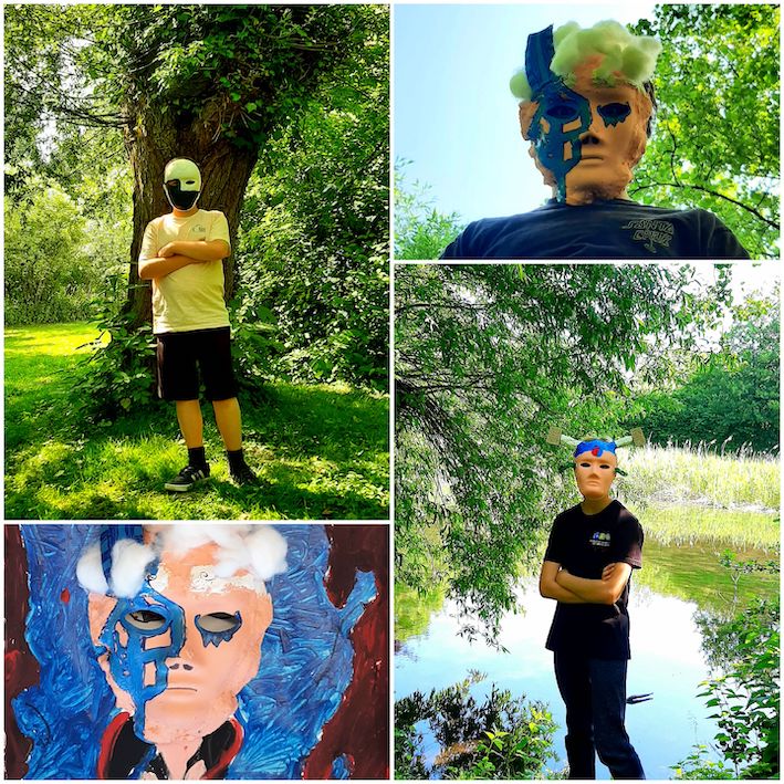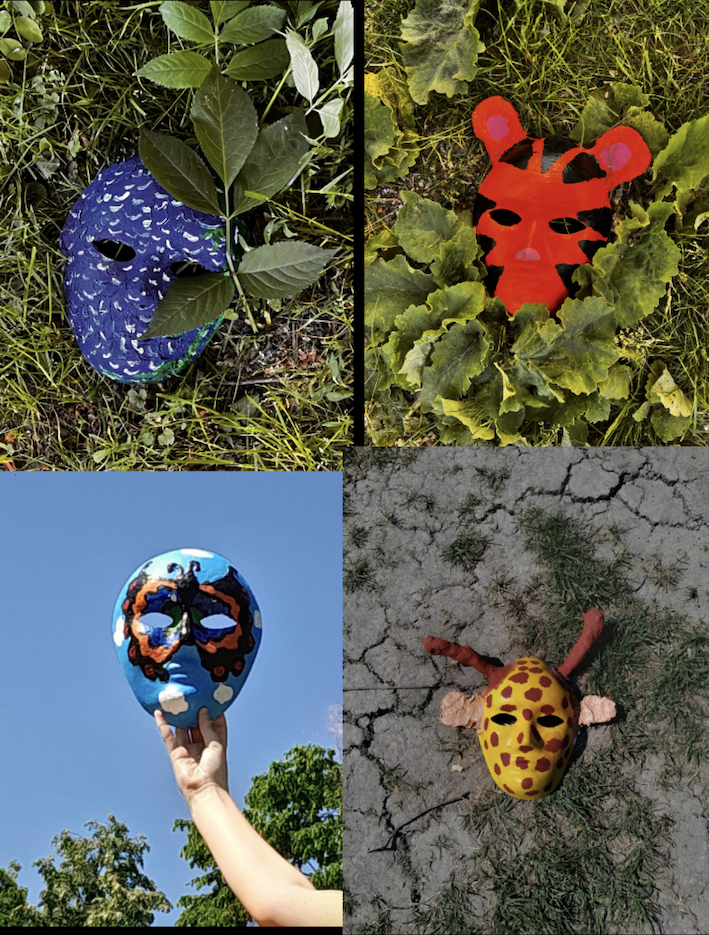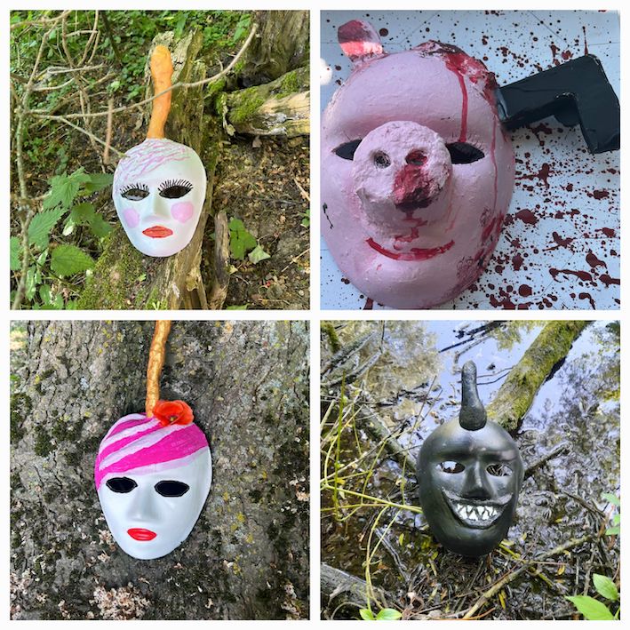 Zuletzt wurden die Elemente am Ipad bearbeitet, diese dann in der Realität digital mittels Adobe Aero platziert und ein kurzes Video der Szenerie gedreht. Die Teilnehmenden selbst waren auf den Videos mit ihren Masken Teil der Szenerie.